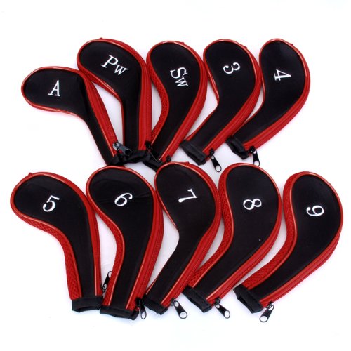 10 Golf Clubs Iron Set Headcovers Head Cover Red/Black / Machine Washable, Zipper-designed Protective Cover with Numbers for Identifcation features