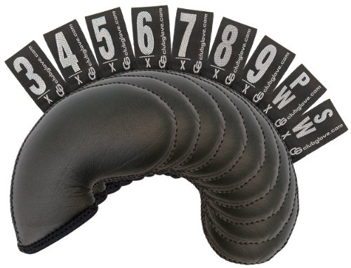 Club Glove Gloveskin Iron Covers...Quality Golf Club Protection! By far the most superior iron covers in golf, the Gloveskin neoprene provides a look, feel and fit that is unmatched. Soft and sleek, they simply slide into your pocket while hitting. Club Glove Gloveskin Iron Covers feature: Gloveskin for leather-like feel and appearance Club head and hosel protection Lightweight and durable Not only protects your clubs but also stops them rattling about in golf bag Fits comfortably in your pocket while hitting Fits right- or left-hand sets of irons Set includes 9 iron covers: #3 thru PW, plus SW Color: Black Sizes: Oversize Regular Club Glove Iron Covers...Maintain That New Club Look!