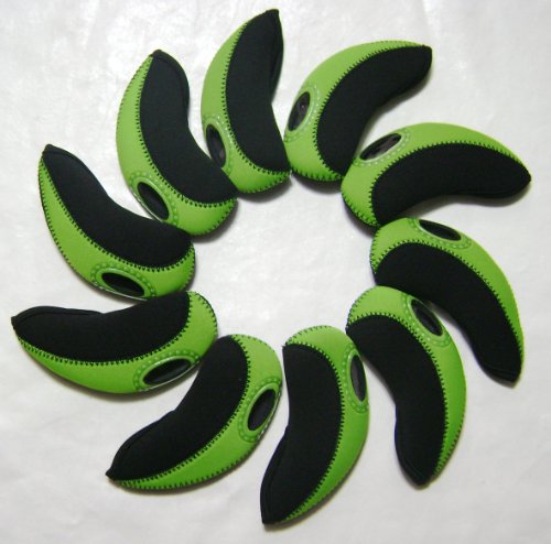 H09 Golf Club Headcover Neoprene Iron Head Cover 10pcs (Black/Green) description